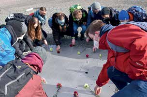 Eine Veranstaltung der ganz anderen Art – trotzdem nicht weniger nachhaltig – gab es eine Woche später zu erleben. In einem Dunkelrestaurant bekamen die Teilnehmer*innen zu spüren, wie sich sehbehinderte oder blinde Menschen fühlen. Und da ging es in diesem Fall nur um das „schöne“ Thema Essen. Wie man sich ohne sein Augenlicht im täglichen Leben beweisen muss, erklärte uns anschaulich unsere, durch eine angeborene Augenkrankheit stark sehbehinderte, „Teilzeitkellnerin“. Zwischen dem leckeren 3-Gänge- Menü, das auch oft nur mit Fingern zu sich genommen wurde (der Tischnachbar sieht ja nichts :-), stellten die 13 Mädchen und Jungen in völliger Dunkelheit viele Fragen, die auf bemerkenswerte Weise eine Antwort fanden. Wie gut es gefallen hat, sah man dann nach über zwei Stunden (nun wieder bei Tageslicht) an den im Dunkeln gemalten Skizzen und Zeichnungen oder auch niedergeschriebenen Texten, die neben der Vorstellung über die Tischanordnung im Raum auch ganz viele Dankeschöns an das Team erhielten.